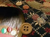 生地の上のボタンは直径約2cmです。生地のたて方向=写真のたてです。