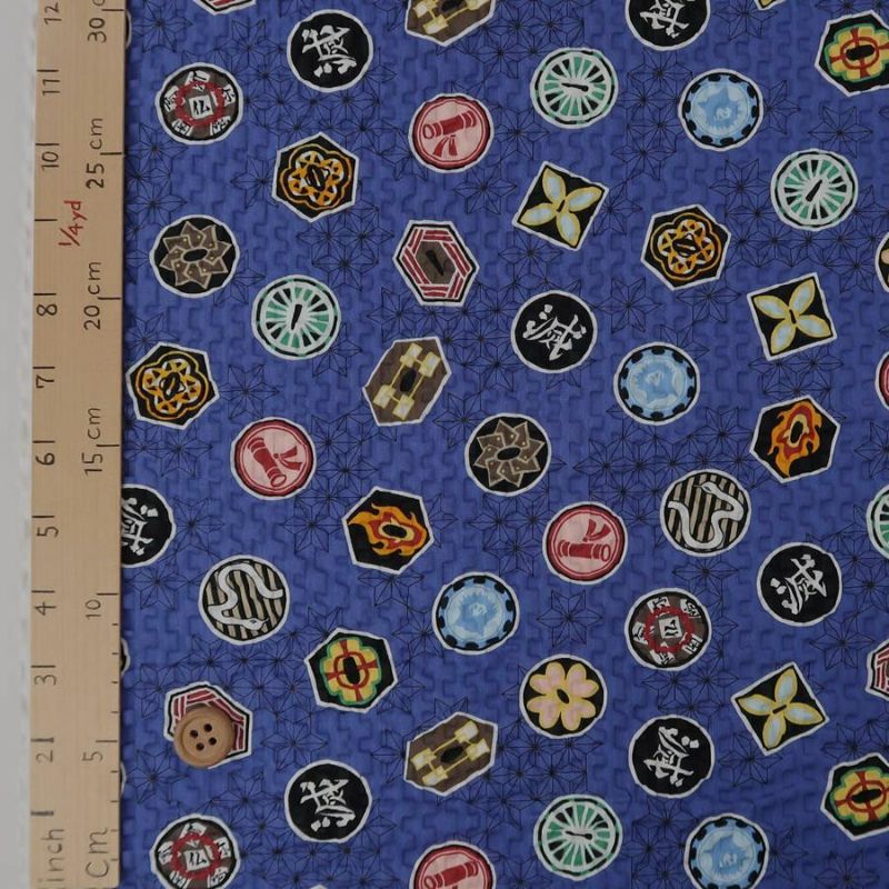 男の子の夏服に 鬼滅の刃リップル生地 (白) 甚平・浴衣に! 10cm単位 切り売り