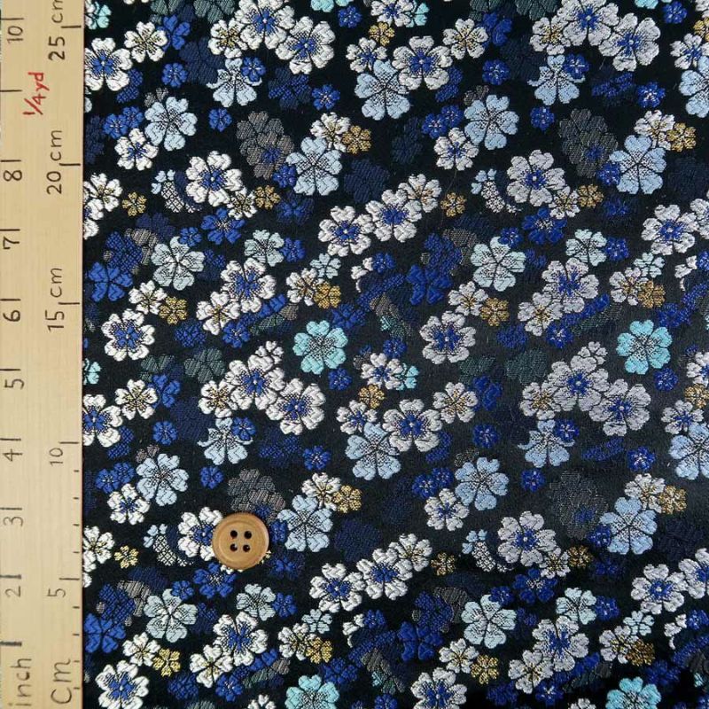 キラキラ華やかで素敵!お値段も魅力です 金襴生地(金らん)きらめき梅(黒) 10cm単位 切り売り