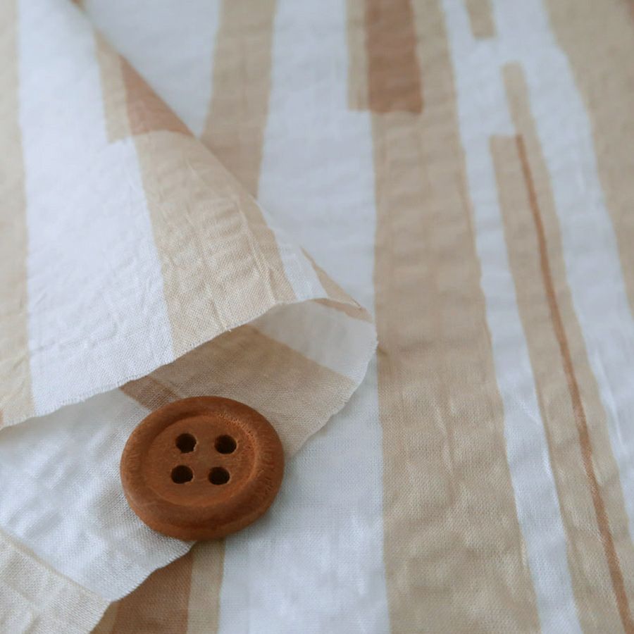 他の画像を見る ナチュラルな魅力のコットン生地 生産終了/在庫限り しじら織り生地・たて縞(アイボリーベージュ) 10cm単位 切り売り 定価 ¥ 151 のところ 販売価格 ¥ 145 税込 お気に入りに登録する