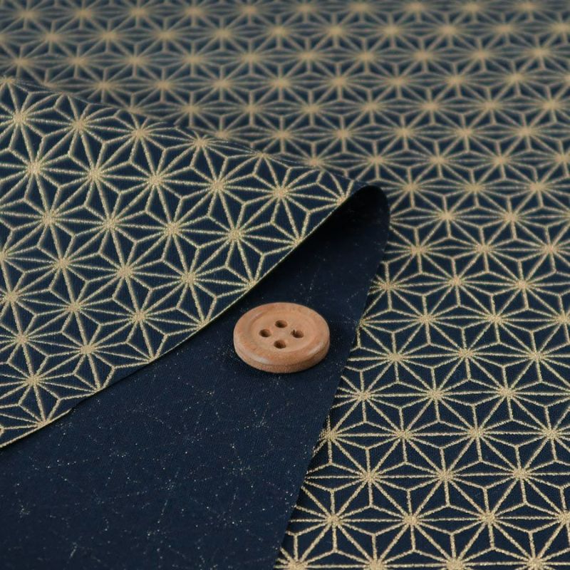 手芸や小物制作に 和柄コットン生地 金の麻の葉(濃紺) 10cm単位 切り売り