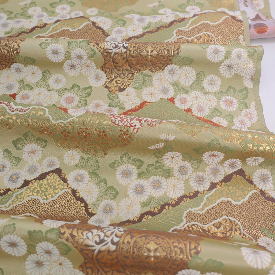 他の画像を見る さりげない伝統文様が上品なきんらん生地 1反(10m)単位お取寄せ/金襴生地(金らん) さくら青海波に金散らし(淡わさび) 定価 ¥ 48,125 のところ 販売価格 ¥ 45,718 税込 詳細を見る お気に入りに登録する