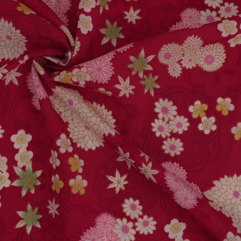 アンティーク柄の縮緬で手芸を 一越ちりめん生地 陰紋に春秋花(黒) 10cm単位 切り売り