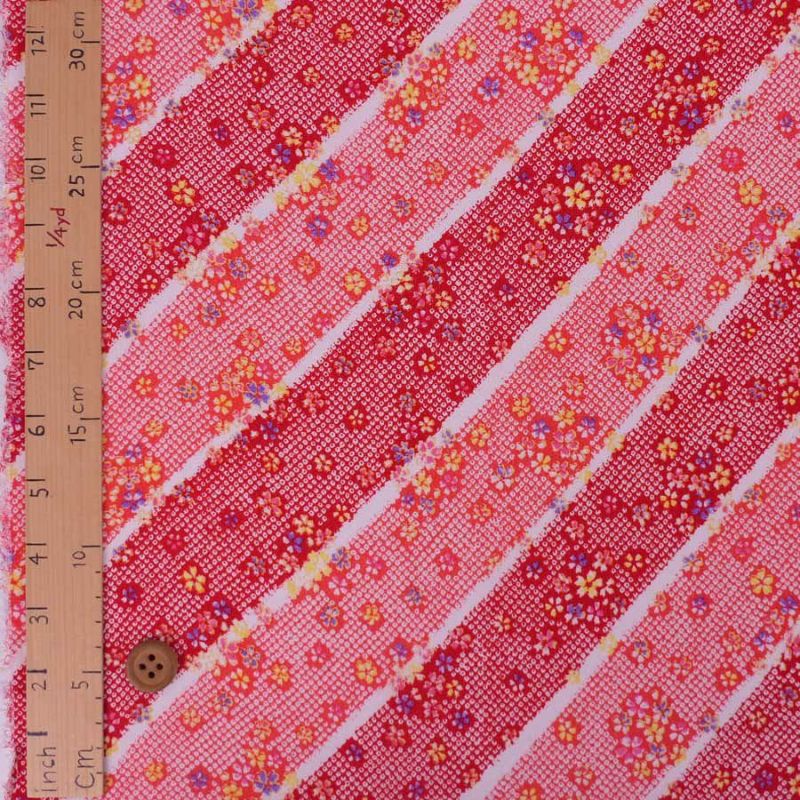 斜めラインの疋田しぼりがオシャレ 一越ちりめん生地 斜めかのこに小桜(赤/さんご) 10cm単位 切り売り