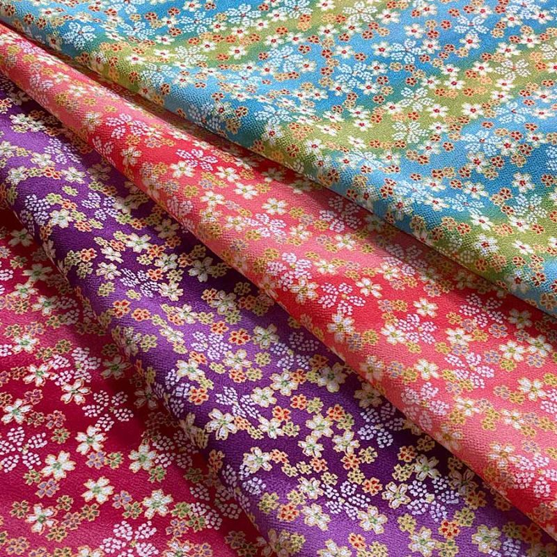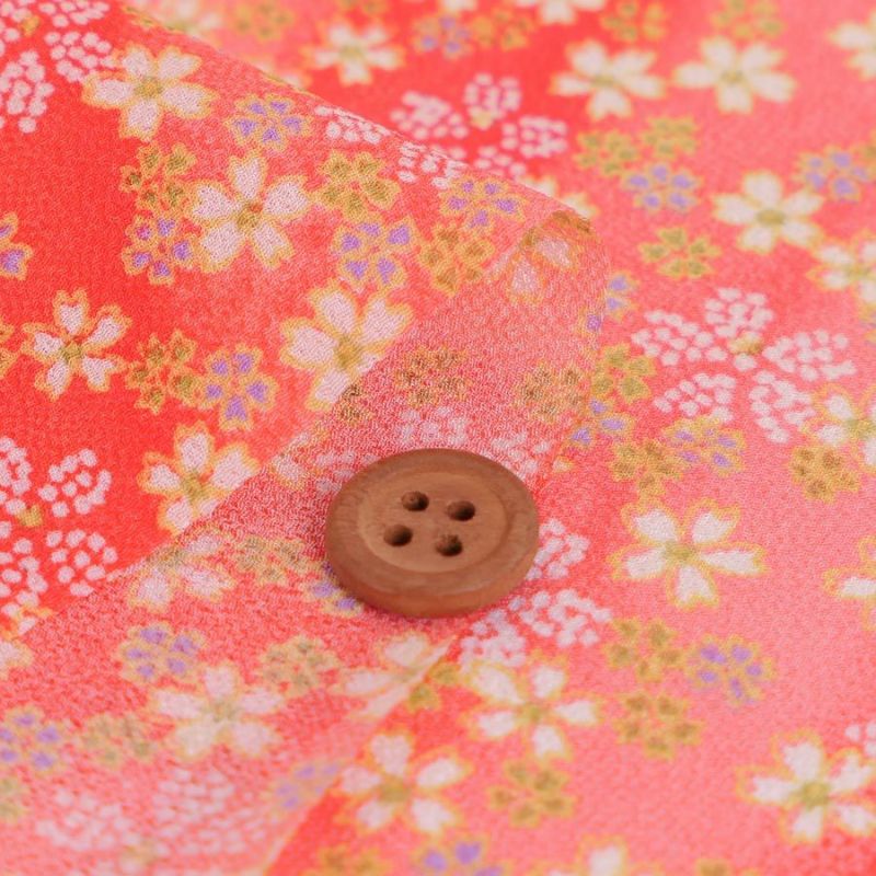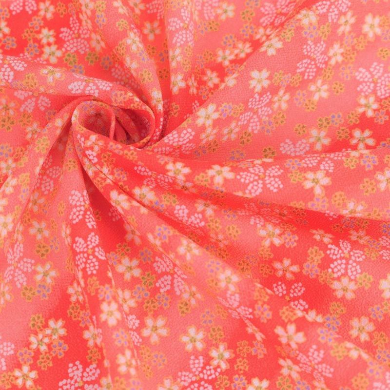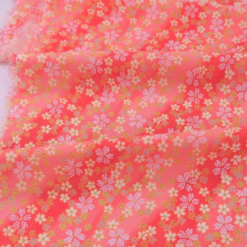 和小物にもおすすめ 一越ちりめん生地 はすぼかしに舞桜(赤) 10cm単位 切り売り