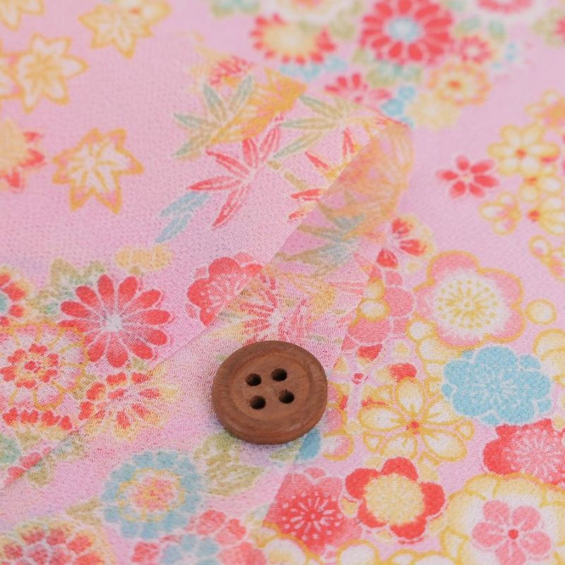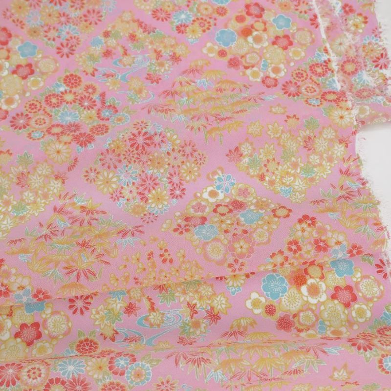 縮緬細工・つまみ細工に 一越ちりめん生地 春秋模様(パステルピンク) 10cm単位 切り売り