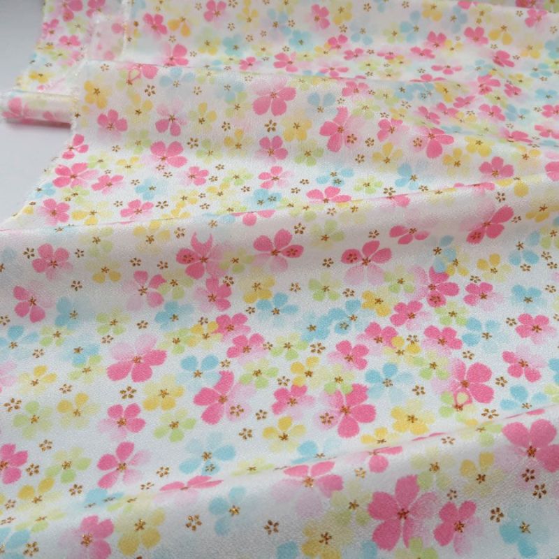 つまみ細工や手芸に 一越ちりめん生地 ふうわり花(白/桃色) 10cm単位 切り売り