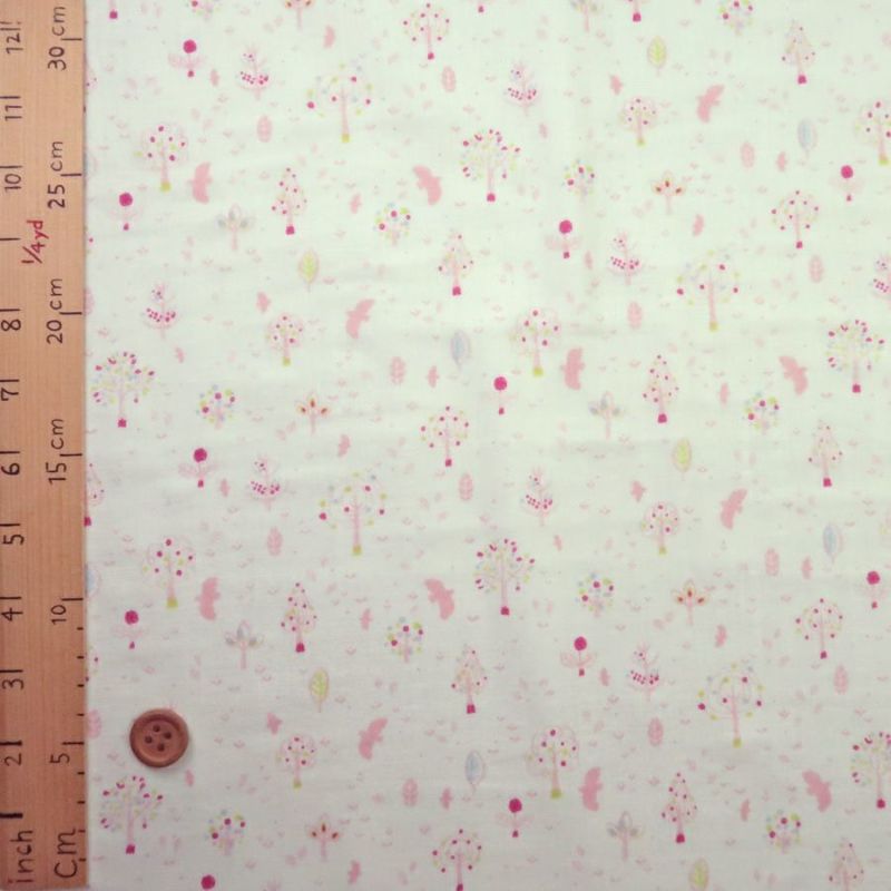 マスクやブラウスに♪ ダブルガーゼ生地 鳥と木立(グリーン) 10cm単位 切り売り