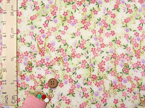 古布調ちりめん生地・和花づくし(うぐいす色) 10cm単位 切り売り