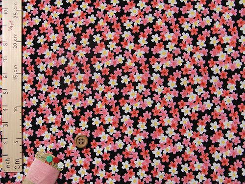 ちりめん生地・桜舞(黒) 10cm単位 切り売り