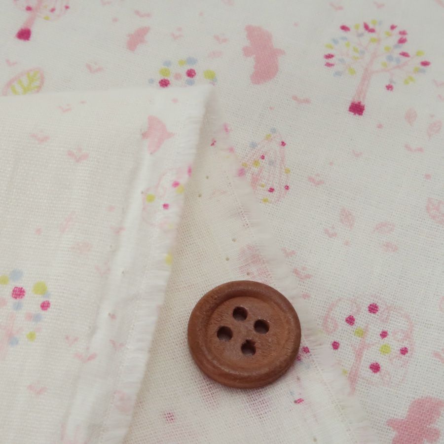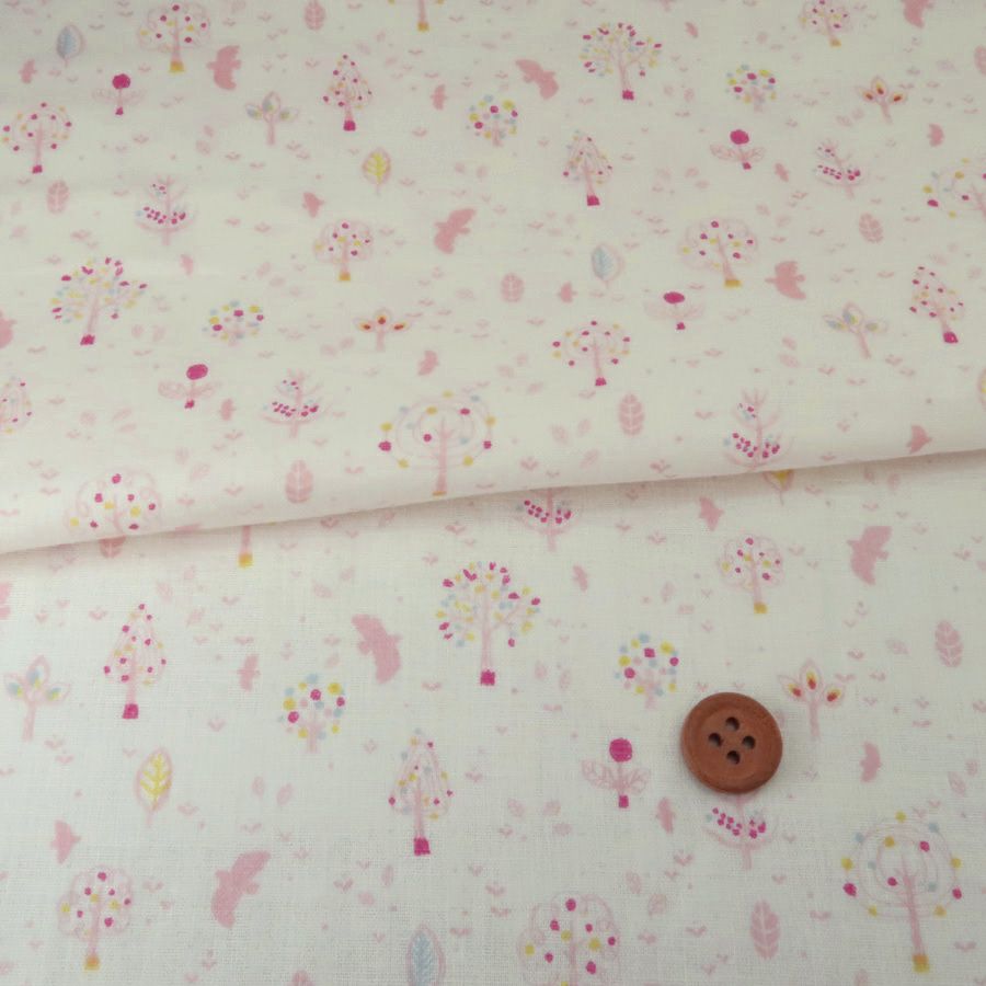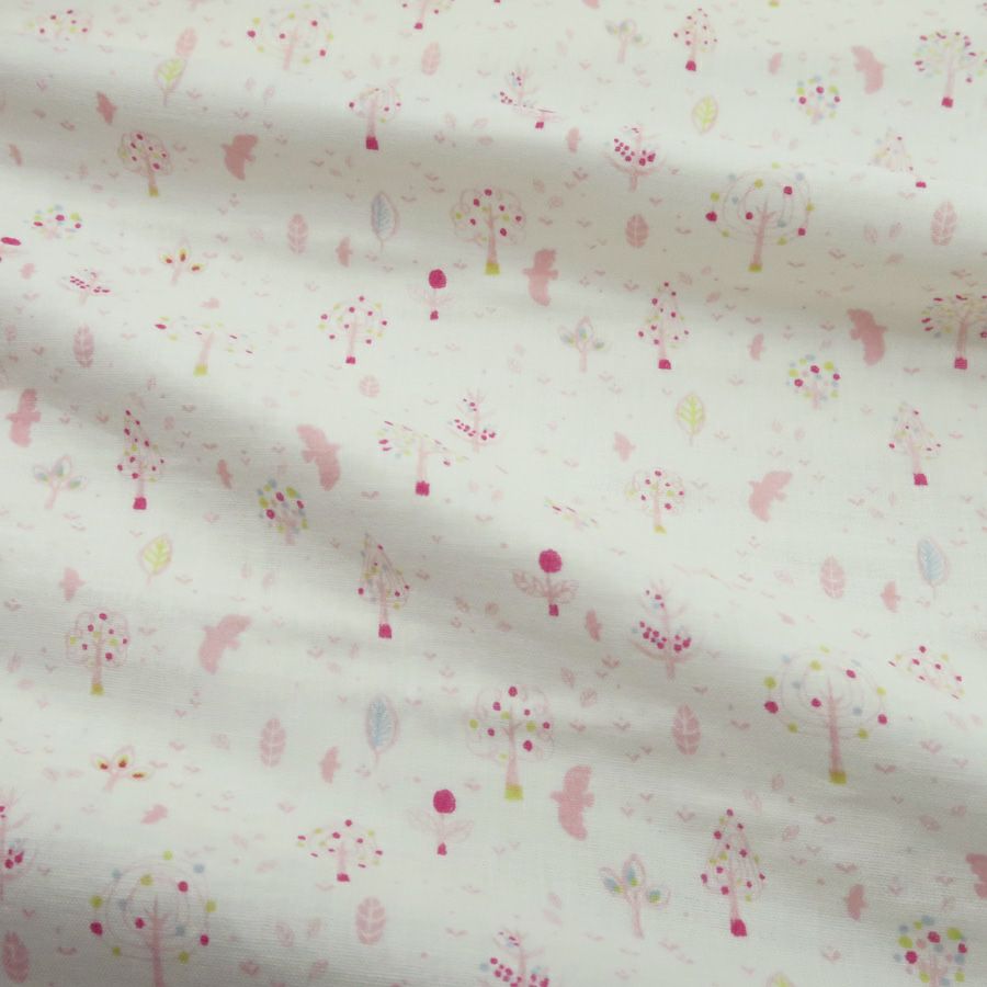 生産終了/在庫限り ダブルガーゼ生地 鳥と木立(ピンク) 10cm単位 切り売り