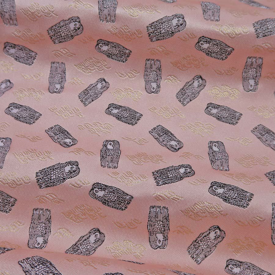 在庫限り/ 金襴生地(金らん) アマビエ柄(ピンク) 10cm単位 切り売り