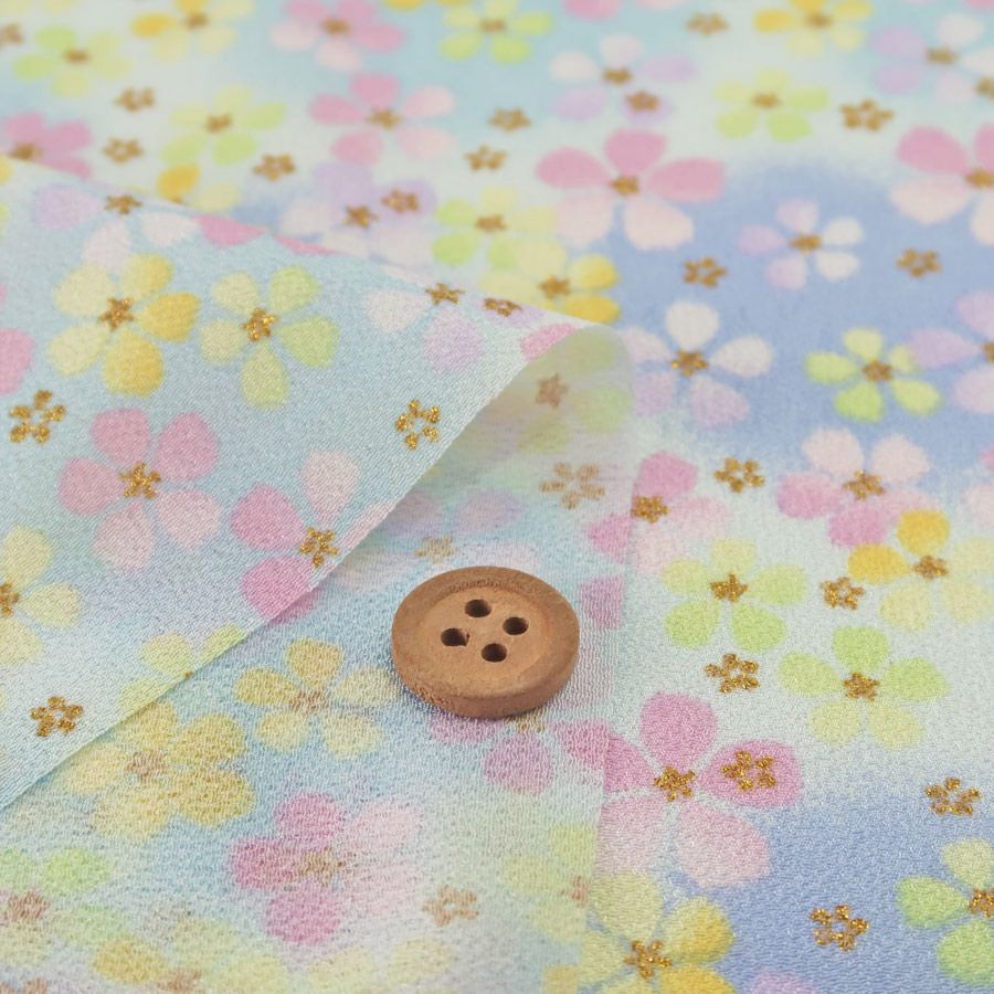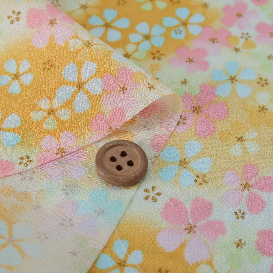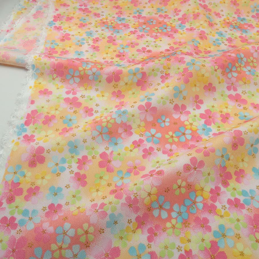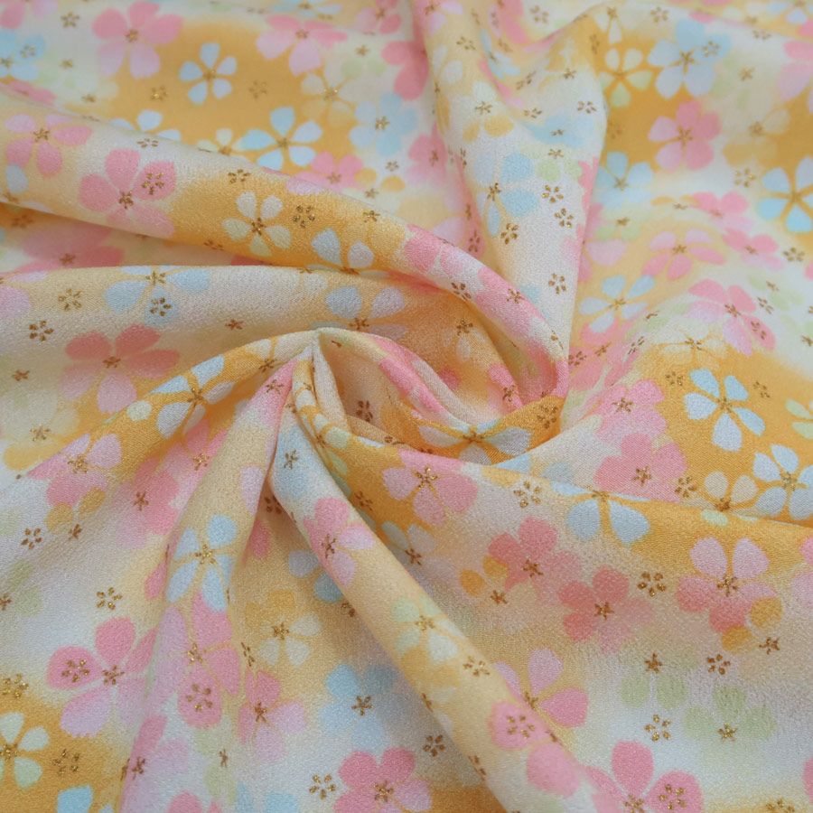 一越ちりめん生地 ふうわり花(黄色) 10cm単位 切り売り