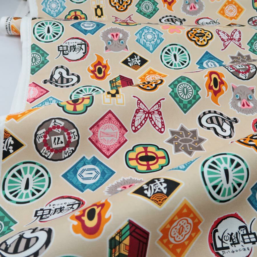 鬼滅の刃シルエット柄 コットンオックス生地(黒) 10cm単位 切り売り