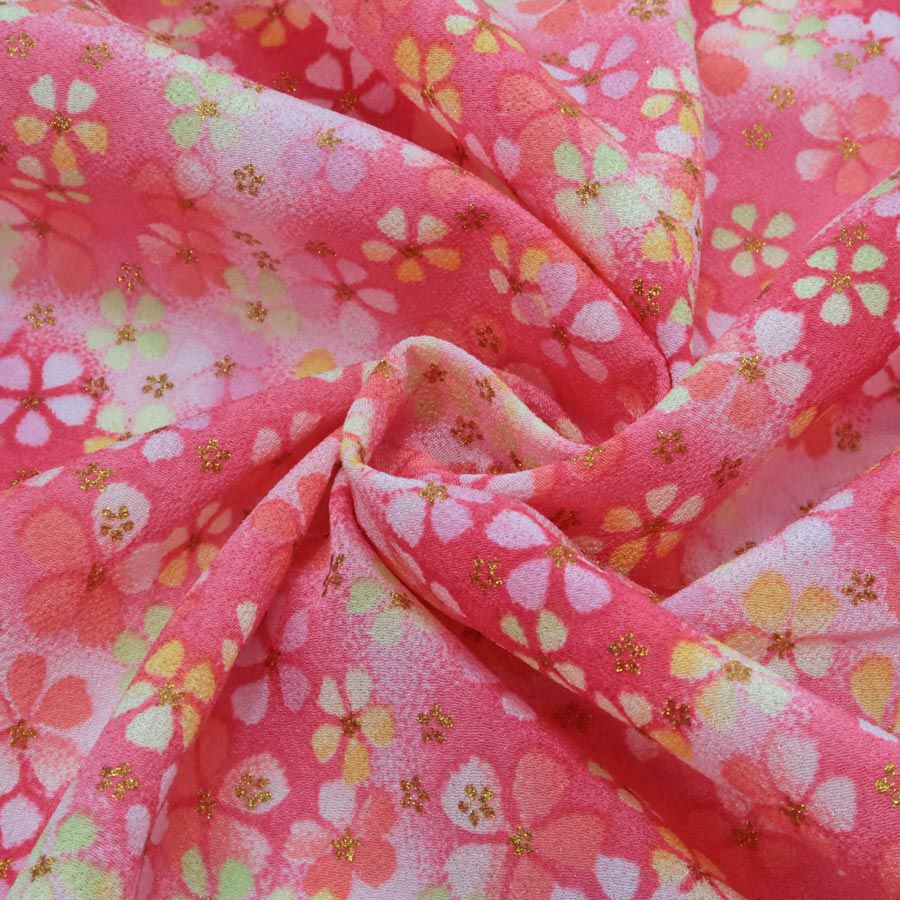 ポリちりめん生地 小菊もよう(ピンク) 10cm単位 切り売り