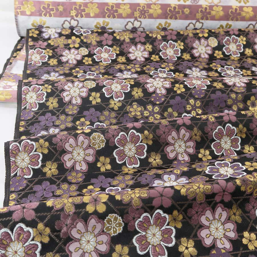 金襴生地(金らん) 雪輪尽くし花模様(黒) 10cm単位 切り売り
