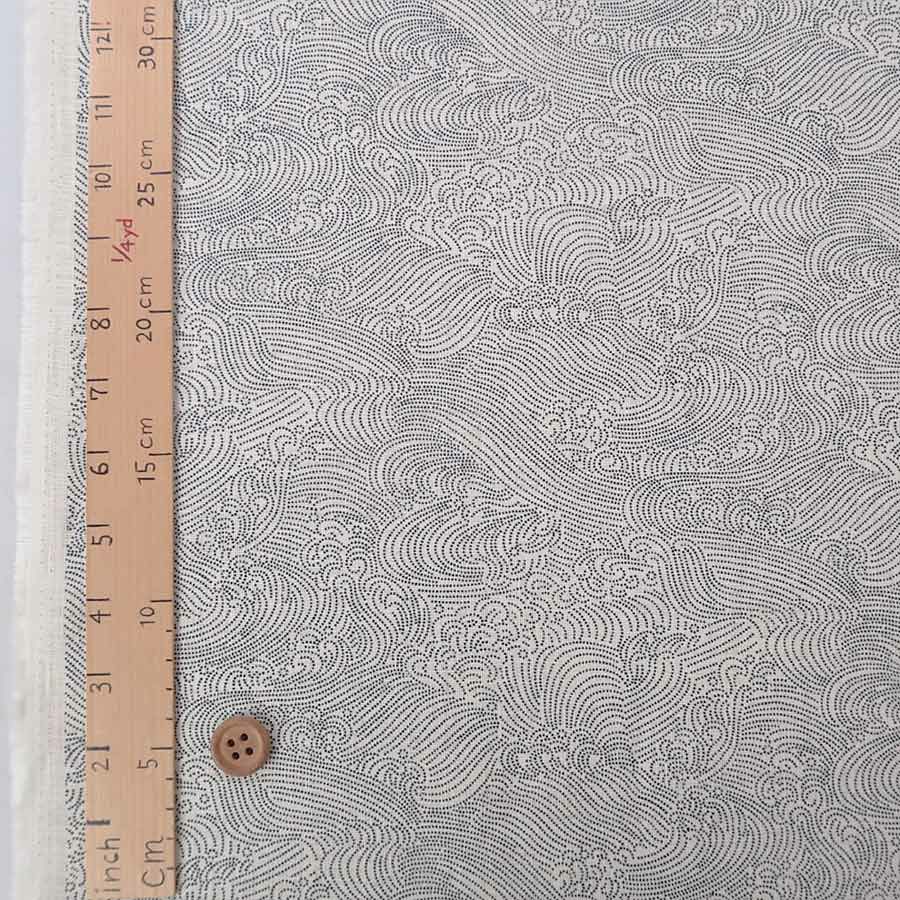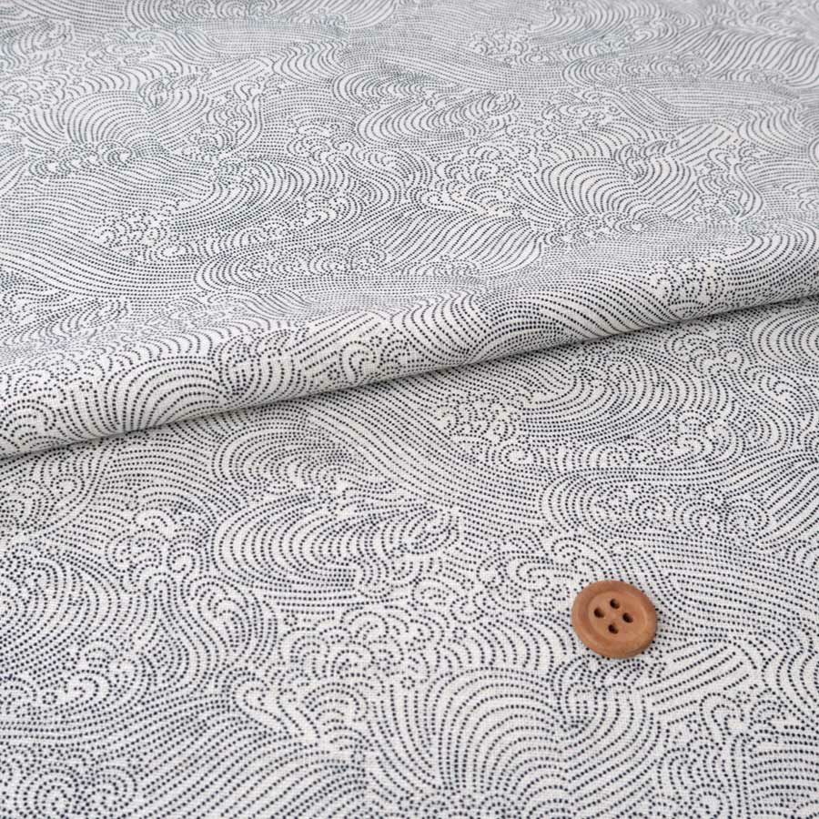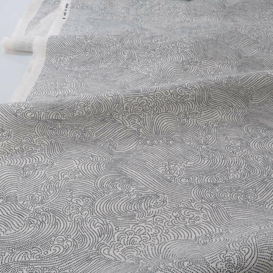 ポリちりめん生地 小菊もよう(黒) 10cm単位 切り売り