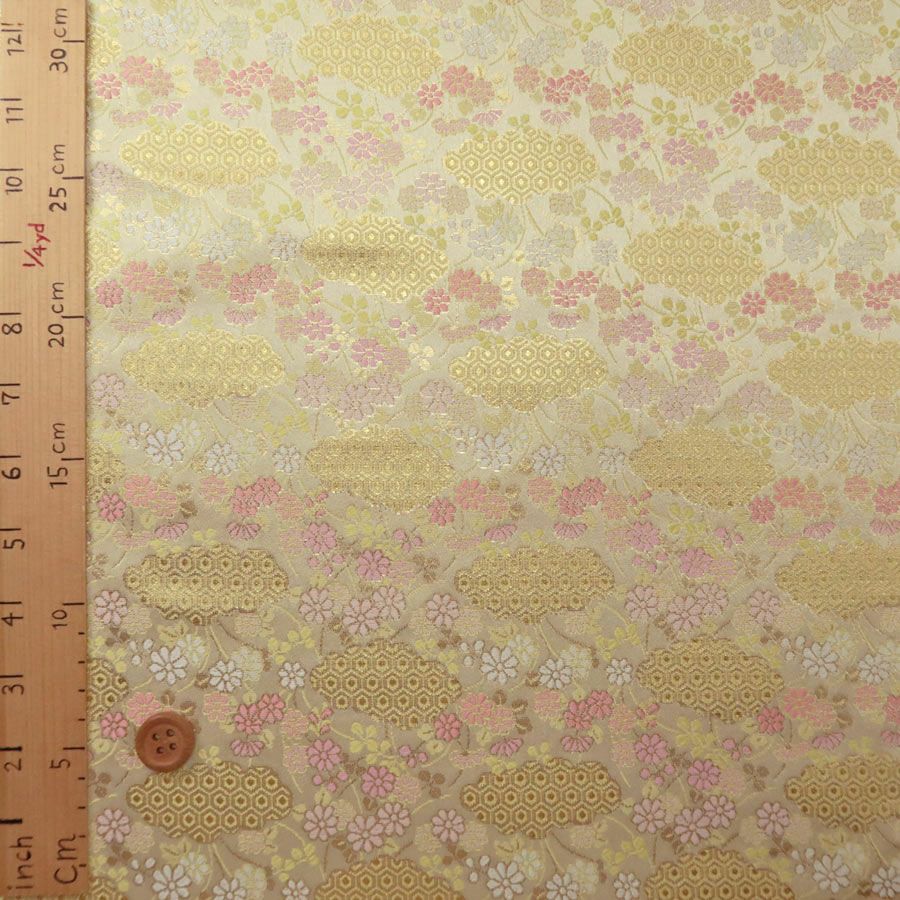 他の画像を見る かわいい色柄の西陣織きんらん 金襴生地(金らん) 流水に夜桜と蝶(アイボリー/ピンク) 10cm単位 切り売り 販売価格 ¥ 385 税込 在庫切れ 再入荷お知らせ お気に入りに登録する