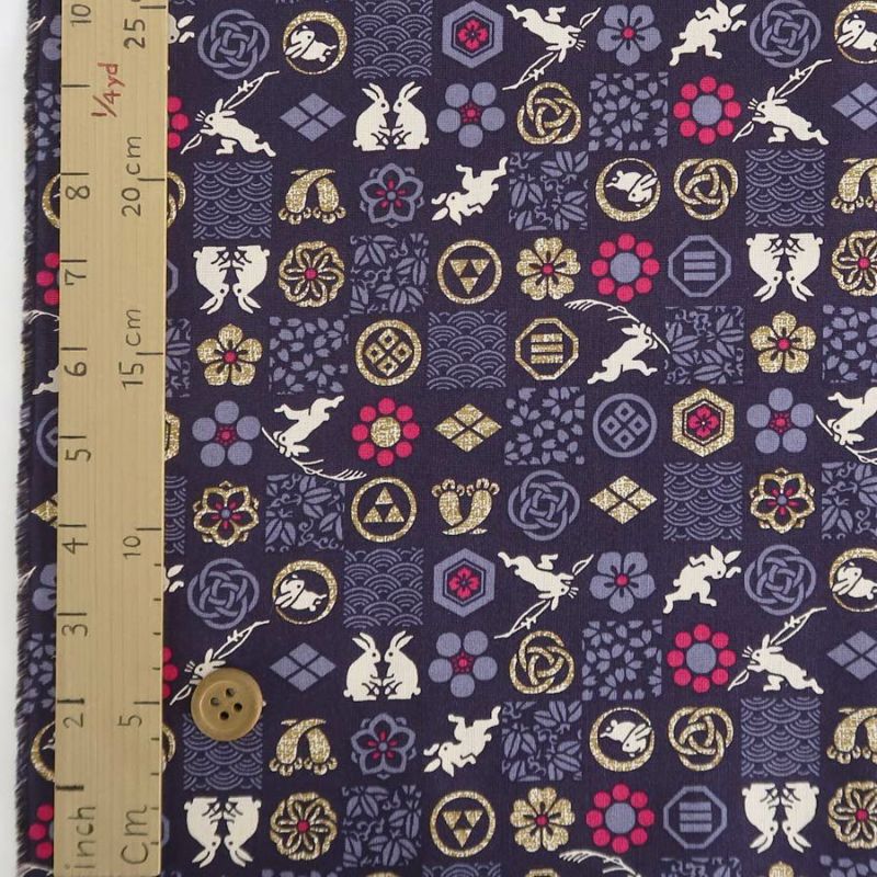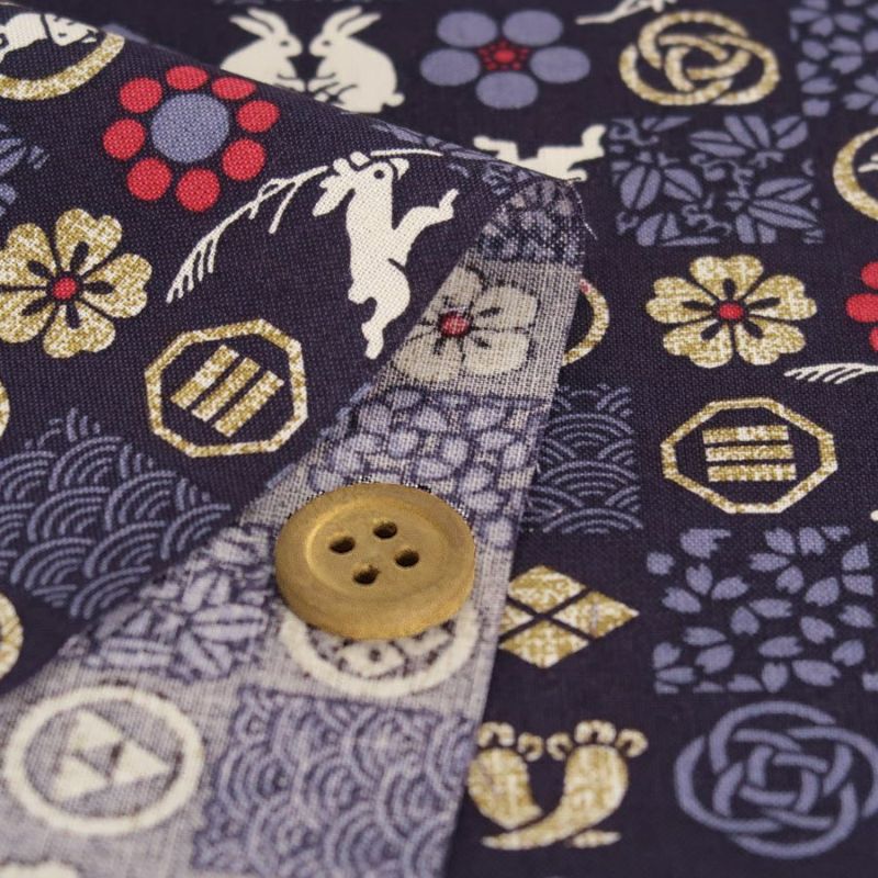 生地の上のボタンは直径約2cmです。生地のたて方向=写真のたてです。