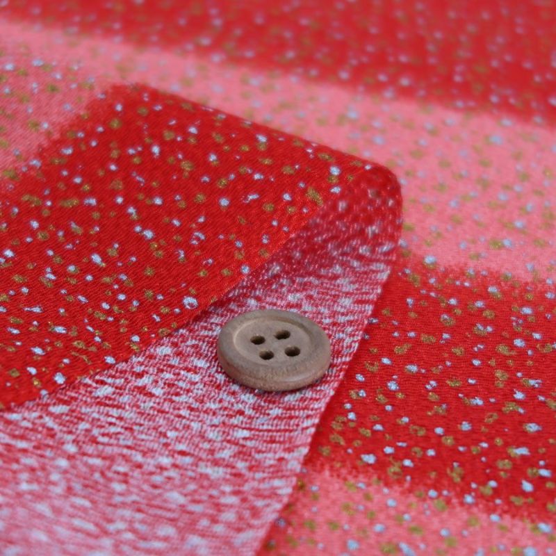 ちりめん生地 段ぼかしに金銀ふぶき(朱赤)