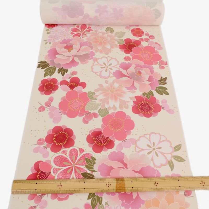 七五三きものにかわいい 着物用洗える生地 和花の競演(コーラルピンク) 1反売り(約12m)