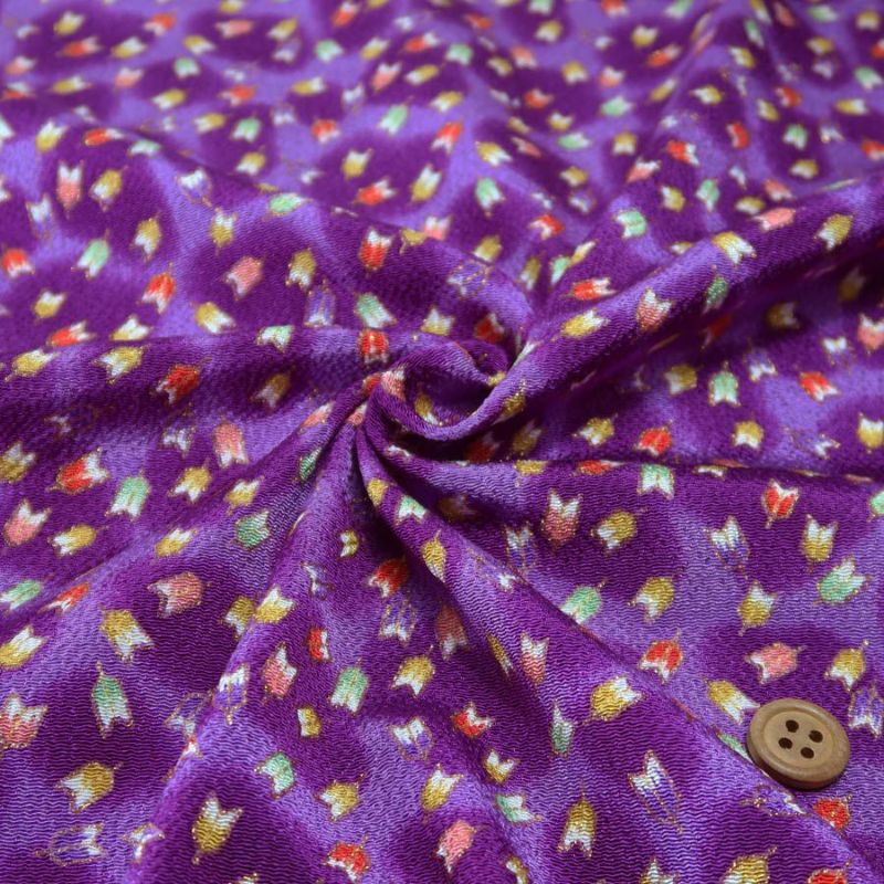 伝統柄のかわいい縮緬 ちりめん生地 ぼかしに小さな矢羽根(紫) 10cm単位 切り売り