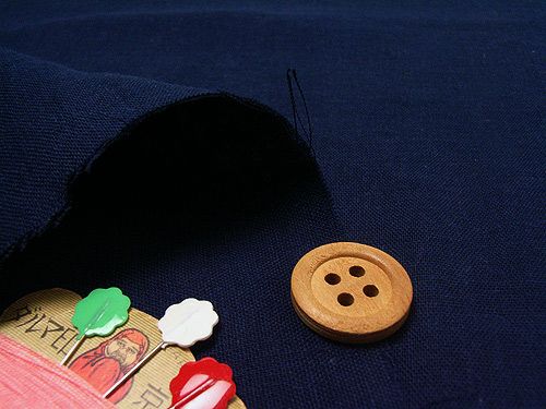 生地の上のボタンは直径約2cmです。生地のたて方向=写真のたてです。