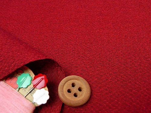無地ちりめん生地(えんじ) 10cm単位 切り売り