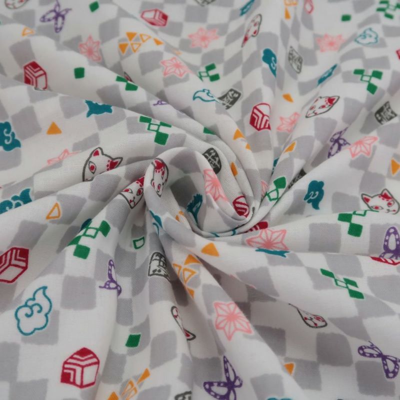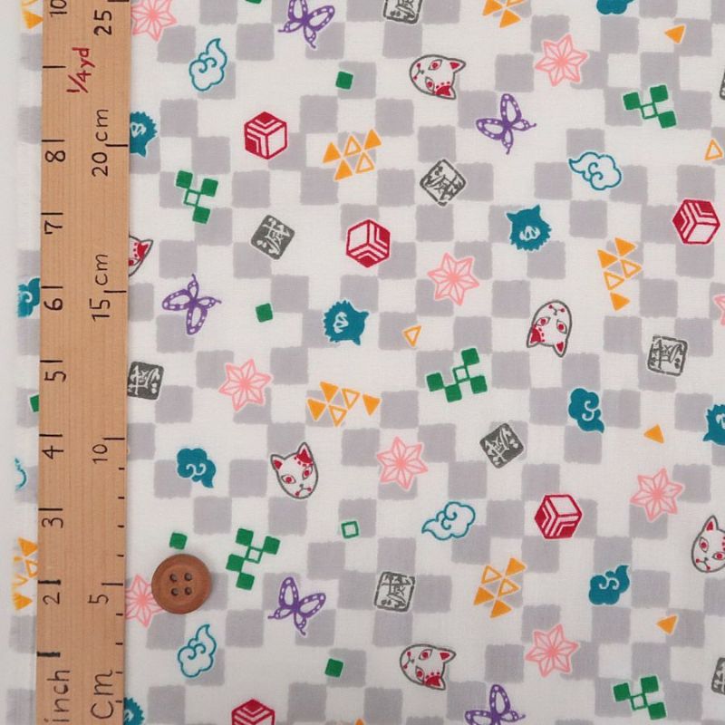 甚平・マスク・ベビー服に 鬼滅の刃ダブルガーゼ生地 市松モチーフ柄(ピンク) 10cm単位 切り売り