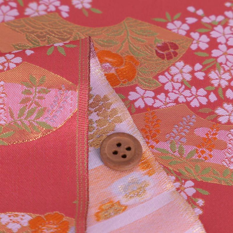 生地の上のボタンは直径約2cmです。生地のたて方向=写真のたてです。