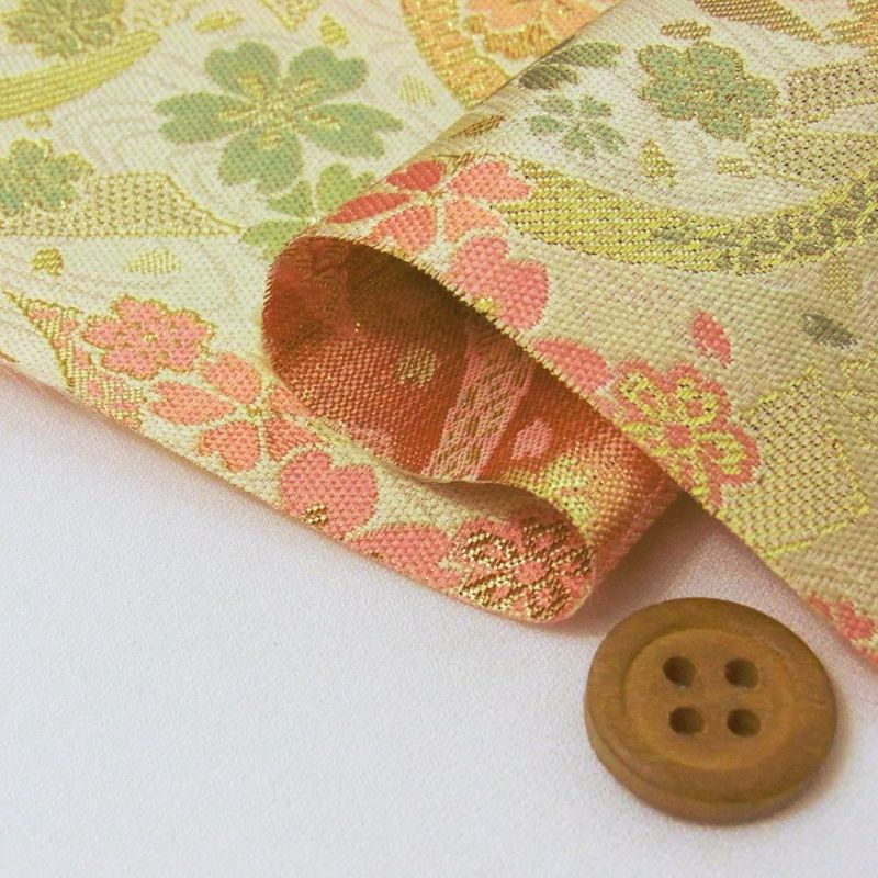 金襴生地(金らん)流れのしに桜(ベージュ)