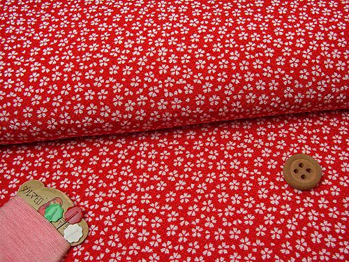 赤地に白の小桜が一面に咲く、可憐な柄のちりめん生地です。