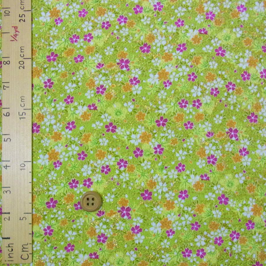 ちりめん生地・春と秋の花景色(黄緑) 10cm単位 切り売り