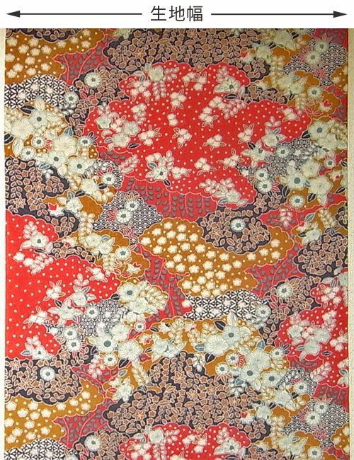 ちりめん生地・辻が花調和花模様(赤) 10cm単位 切り売り
