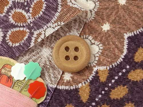金襴生地(金らん) 八重桜にかごめ文様(藤はとば色) 10cm単位 切り売り