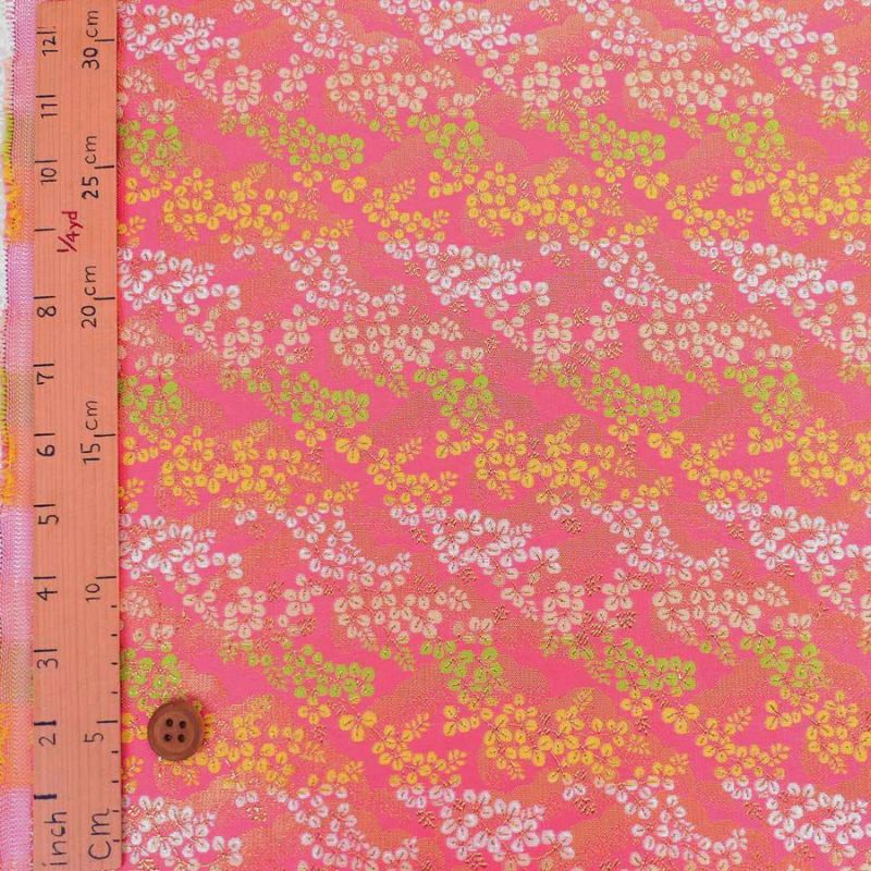 可憐で愛らしい 金襴生地(金らん) 雲に萩(コーラルピンク) 10cm単位 切り売り