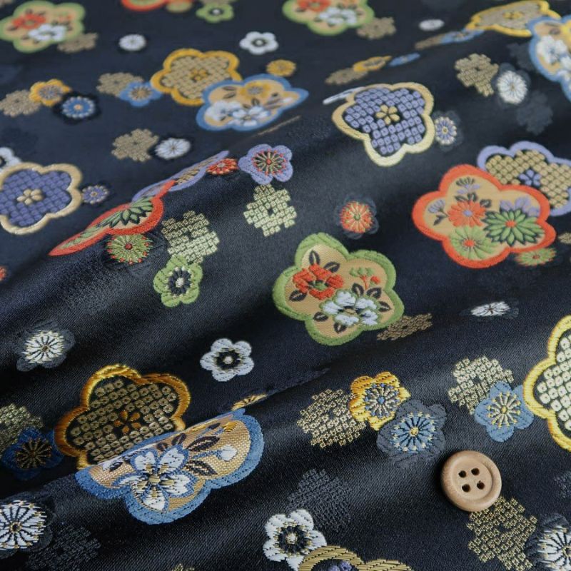 生地の上のボタンは直径約2cmです。生地のたて方向=写真のたてです。