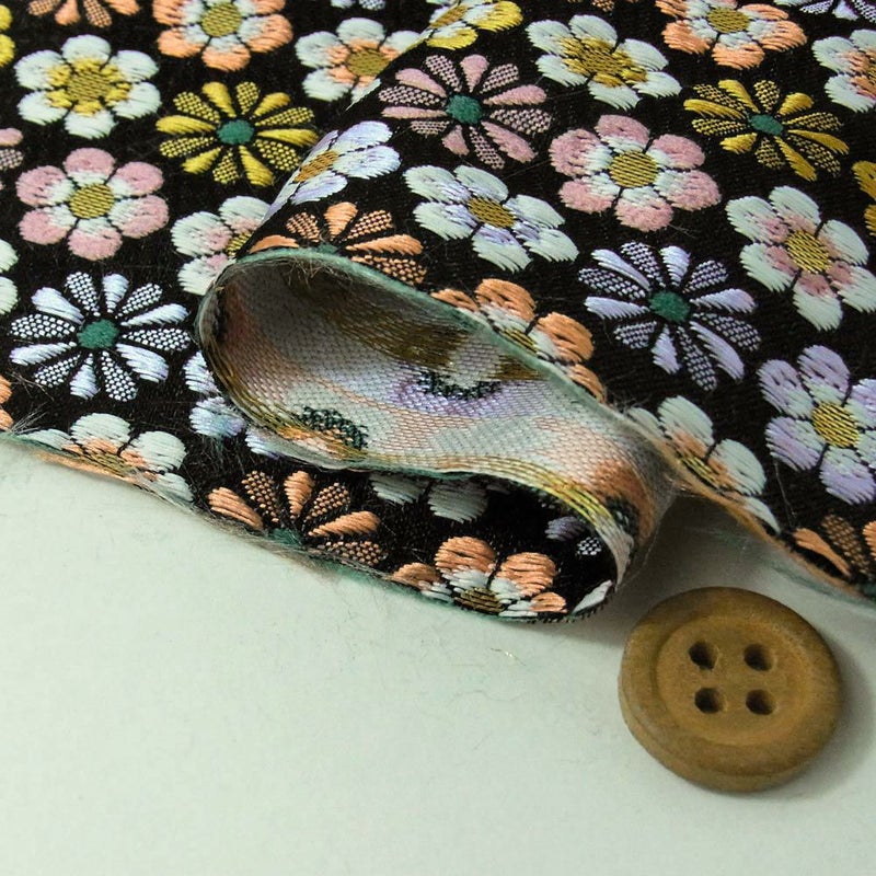様々な彩りで織り出されたお花が可愛らしく、かつ豪華で見栄えがします。お花ひとつ分の直径は約1.8cm。