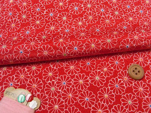 ちりめんカットクロス・菊紋(赤)23×33cm