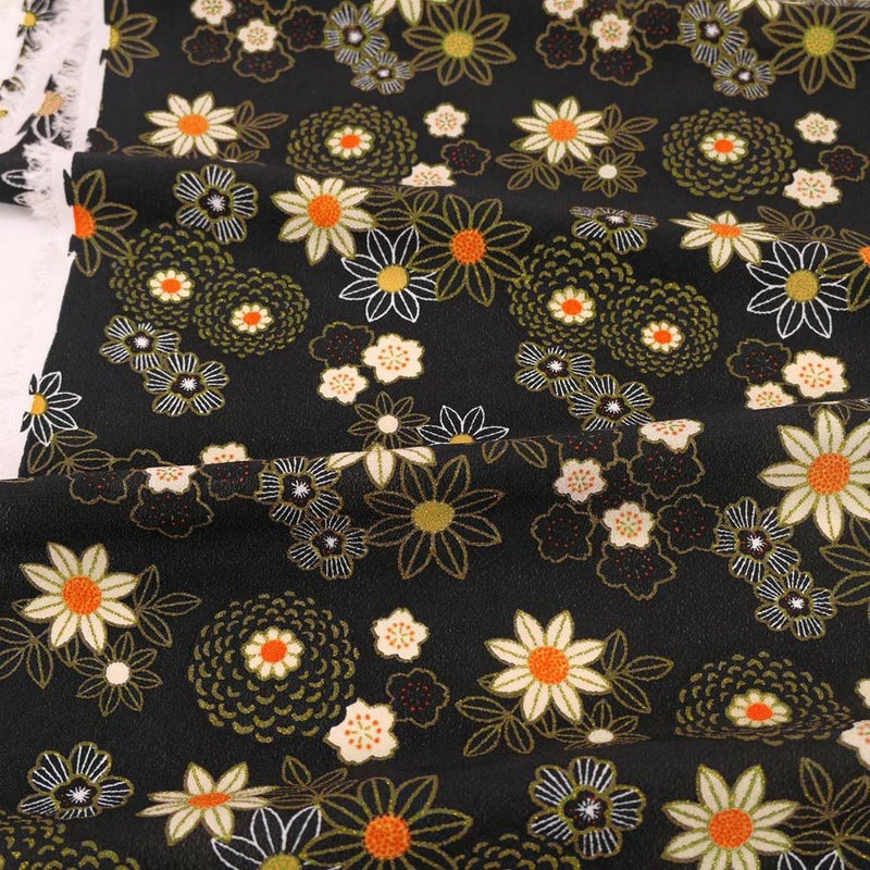 シックな黒で縮緬小物づくりに! 一越ちりめん生地 モダン金彩和花柄(黒) 10cm単位 切り売り