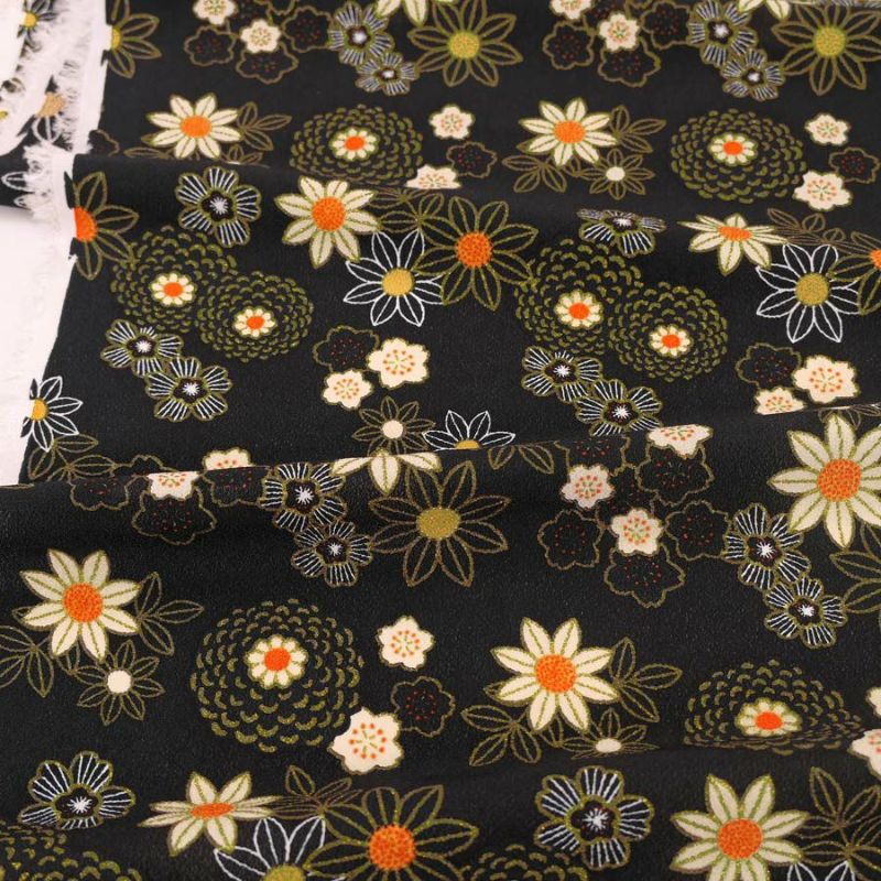 モダンな花柄のひとこし縮緬 一越ちりめん生地 モダン金彩和花柄(しぶ柿色) 10cm単位 切り売り