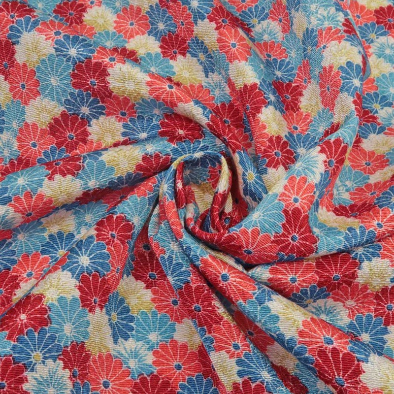 ●多色使いがかわいくていいですね。青系の濃淡、えんじ、濃いサーモンピンク、黄色と白の菊が敷き詰められています。
