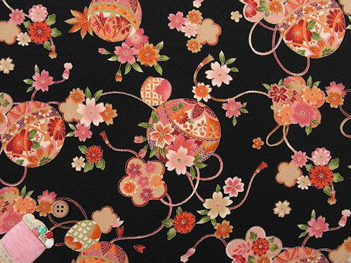 ポリちりめん・華手まり(黒) 10cm単位 切り売り