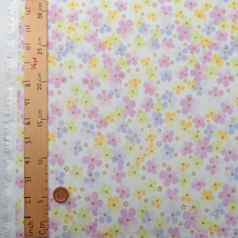 つまみ細工や手芸に 一越ちりめん生地 ふうわり花(白/藤色) 10cm単位 切り売り