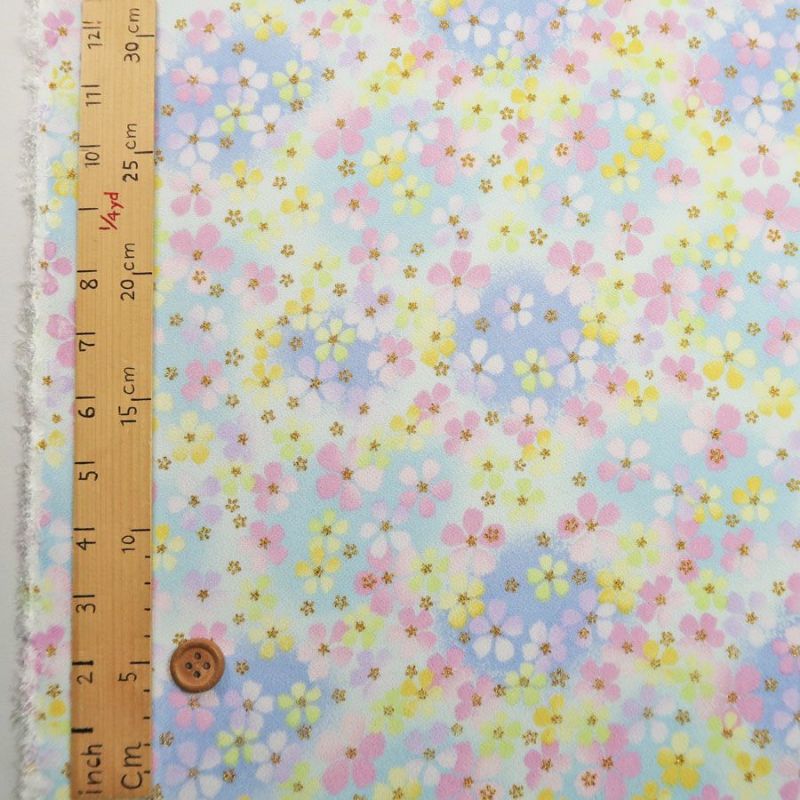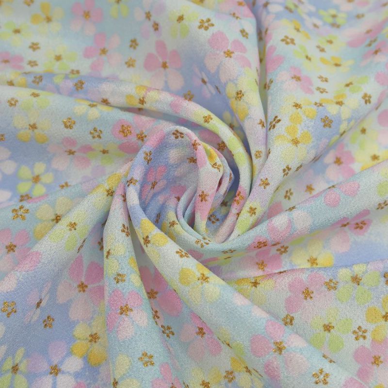 つまみ細工・縮緬手芸に 一越ちりめん生地 ふうわり花(薄い水色) 10cm単位 切り売り