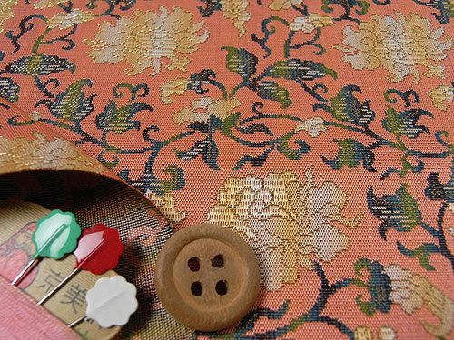 西陣織裂地・牡丹唐草文錦(さんご) 10cm単位 切り売り
