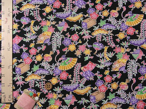 鳥獣戯画風うさぎが可愛い 生産終了/在庫限り 和柄コットン生地 市松あそび兎(黒) 10cm単位 切り売り