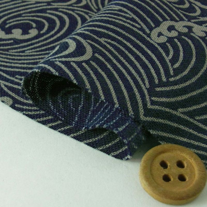 素朴な藍染風木綿布、男性にもオススメの波柄 和柄コットン生地・藍染調 あら波 10cm単位 切り売り