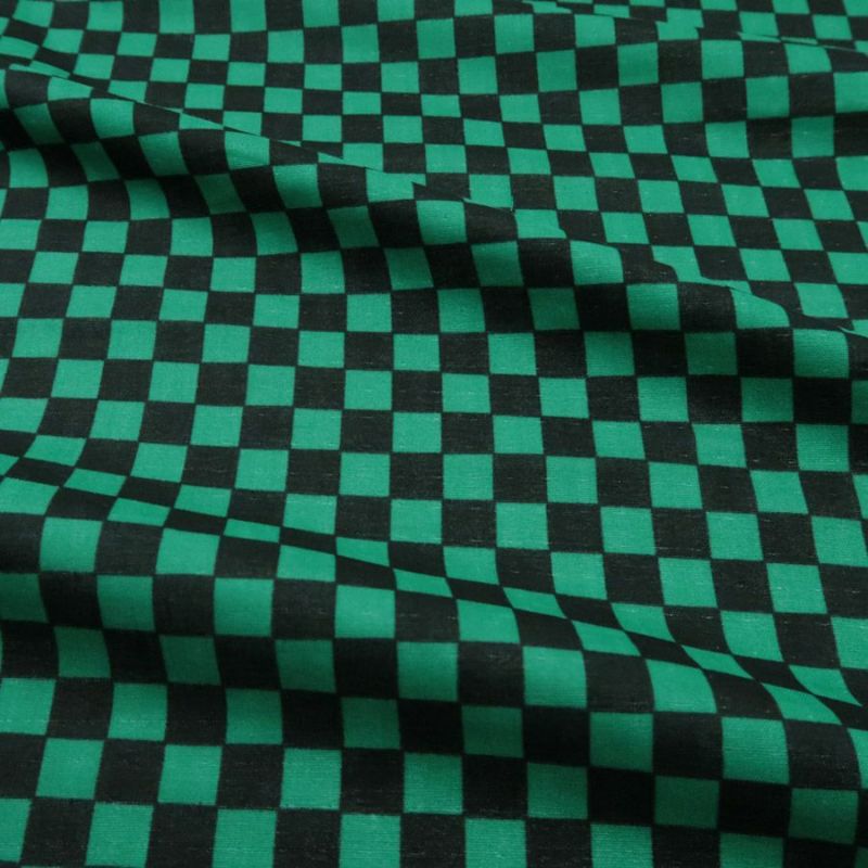 コスプレや小物作りに! ムラ糸モーリークロス 手捺染 市松柄2cm角(黒/緑) 10cm単位 切り売り