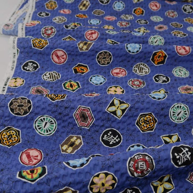 男の子の夏服に 鬼滅の刃リップル生地 (白) 甚平・浴衣に! 10cm単位 切り売り